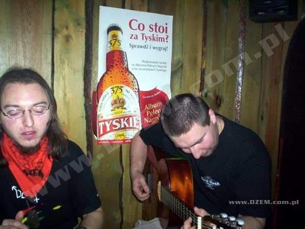 Zmuszony przez publikę wyjąłem gitarkę i zaczęły się pierwsze śpiewy. Później dotarł Vaciak z Colą i przechwycili pałeczkę. Były kiełbaski i pieczonki. Zapadły też pewne ustalenia dotyczące FanClubu, ale o tym już napiszą pewnie inne osoby :) Później dalej granie, śpiewanie, rozmowy, i gra w lotki :D Ogólnie impreza bardzo udana, bardzo, bardzo! Cudowny klimat, cudowni ludzie, aż po świt! Z tego miejsca chciałbym pozdrowić: [w kolejności przypadkowej] Ewę, Łukasza, Alegorna, Sopelka, Romka, Artura, Jesusa, Myszkę, Jolę, Paulinę, Marka, Ewelinę, Sebastiana, Magdę z Romkiem, Petera Dudzika, Jupka z żoną, oraz wszystkich, których nie poznałem z imienia, lub których zapomniałem tutaj wypisać :)