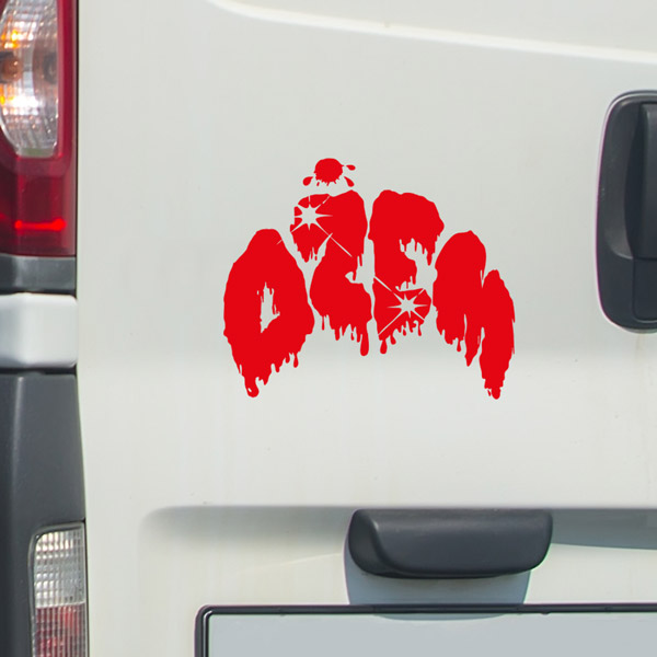 Duża naklejka zewnętrzna wycinana ploterowo (po krawędzi logotypu) z folii polimerowej samoprzylepnej, przeznaczona do samodzielnej aplikacji.