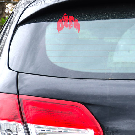 Naklejka wewnętrzna (do klejenia na materiałach przezroczystych, np. szybie) wycinana ploterowo (po krawędzi logotypu) z folii polimerowej samoprzylepnej, przeznaczona do samodzielnej aplikacji