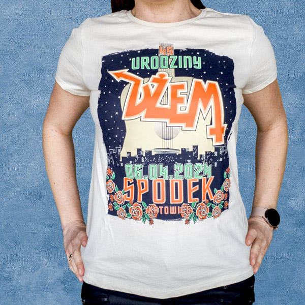 Koszulka w kolorze ecru/natural z oryginalnym nadrukiem okolicznościowym 45 Urodziny. Wersja damska.