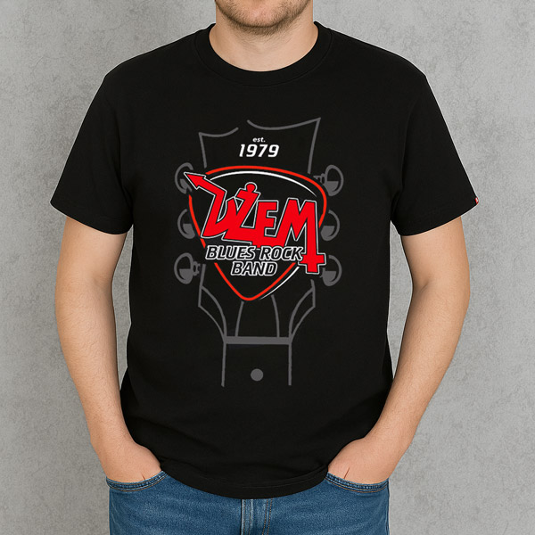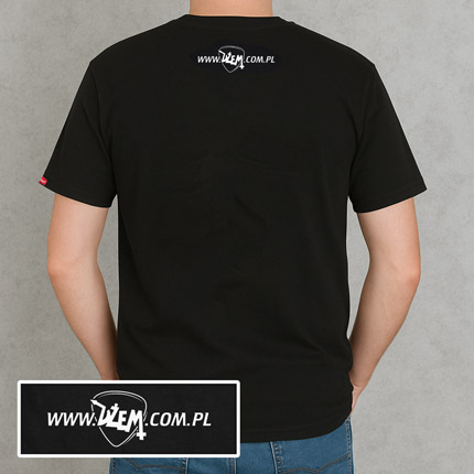 Czarna koszulka z nadrukiem z przodu oraz adresem strony internetowej zespołu z tyłu. Wersja męska/UNISEX.